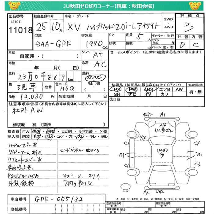 SUBARU SUBARU XV - лот 11018