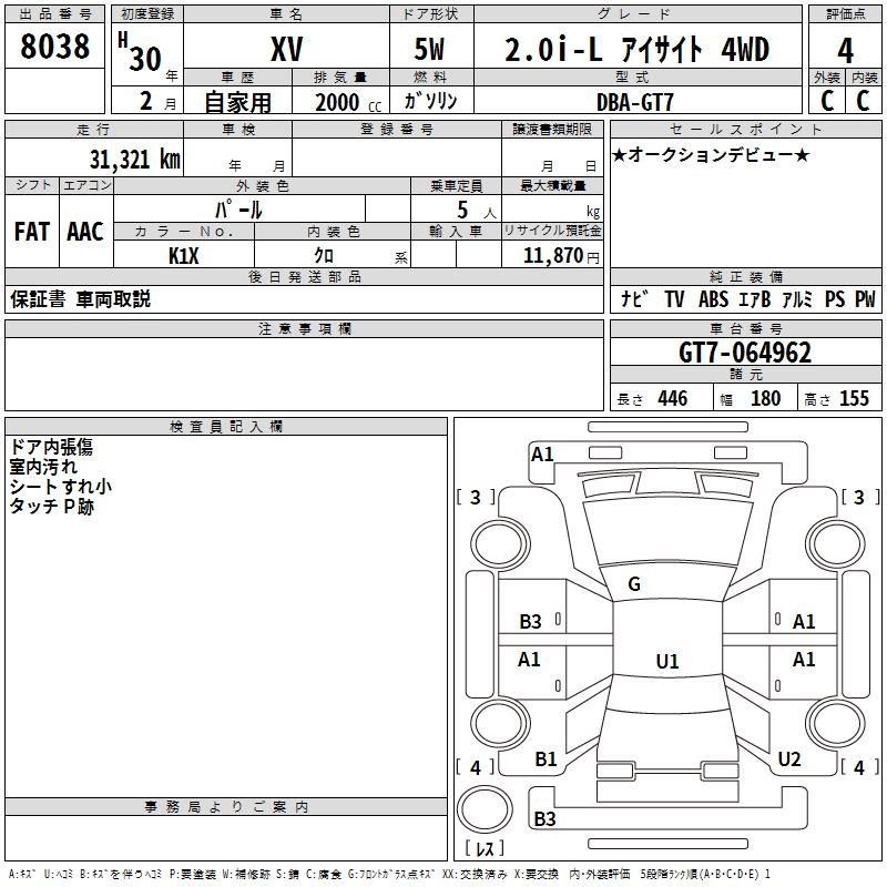 SUBARU SUBARU XV - лот 8038