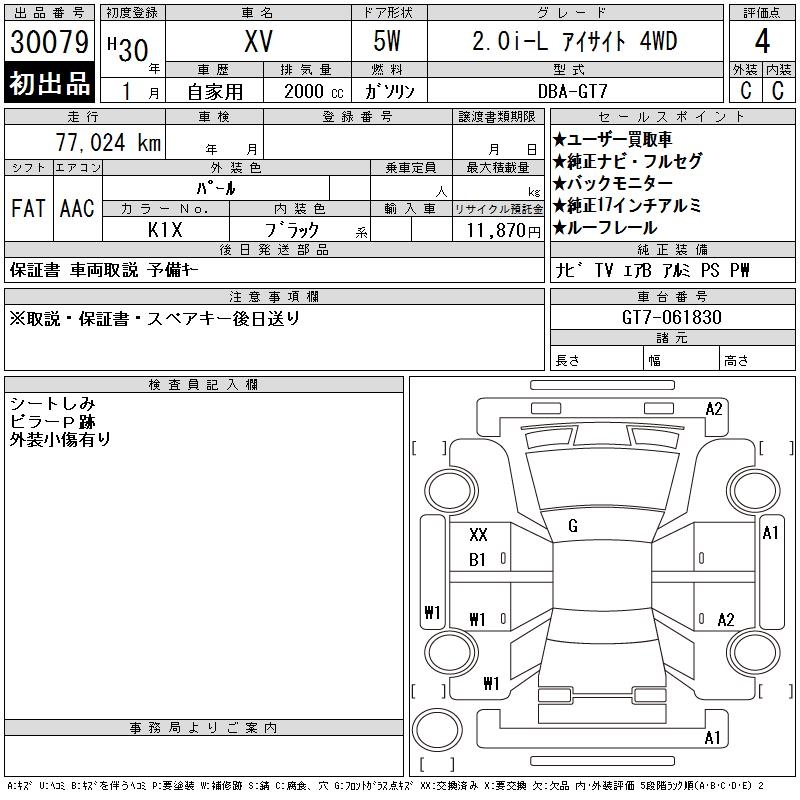SUBARU SUBARU XV - лот 30079