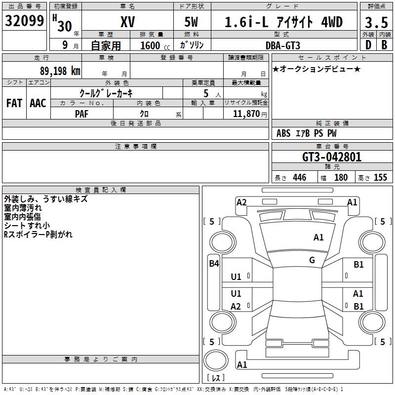 SUBARU SUBARU XV - лот 32099