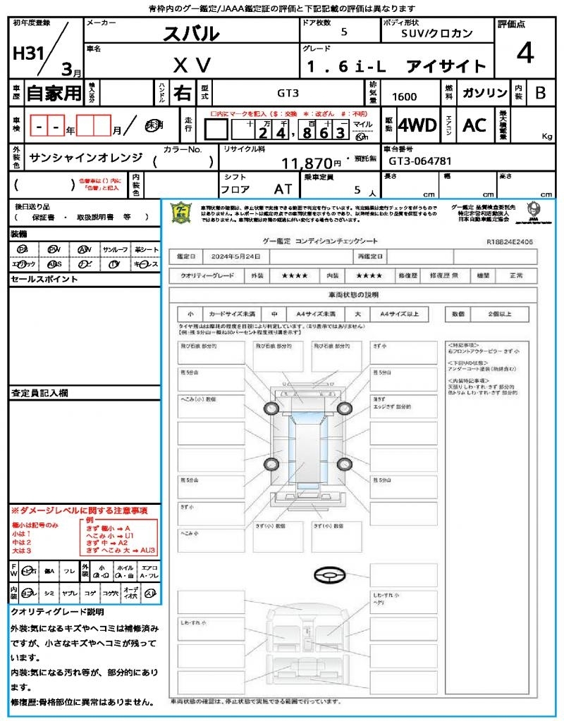 SUBARU SUBARU XV - лот 4315