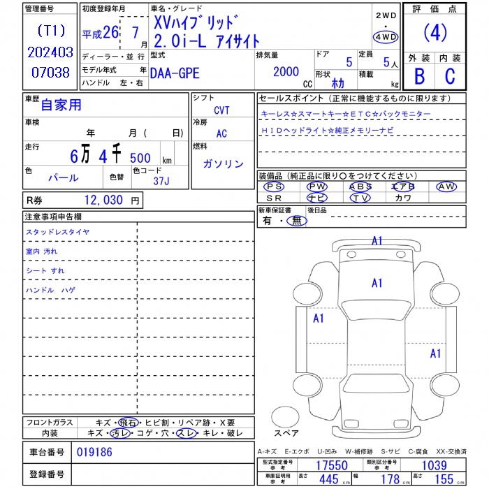 SUBARU SUBARU XV - лот 11967