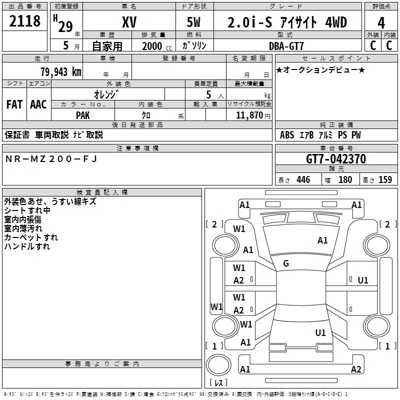 SUBARU SUBARU XV - лот 2118
