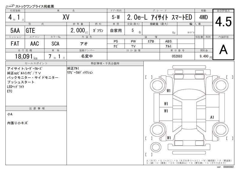 SUBARU SUBARU XV - лот 20912
