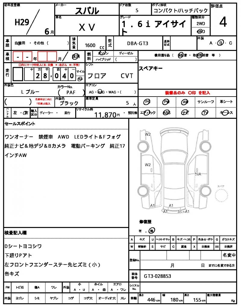 SUBARU SUBARU XV - лот 2165
