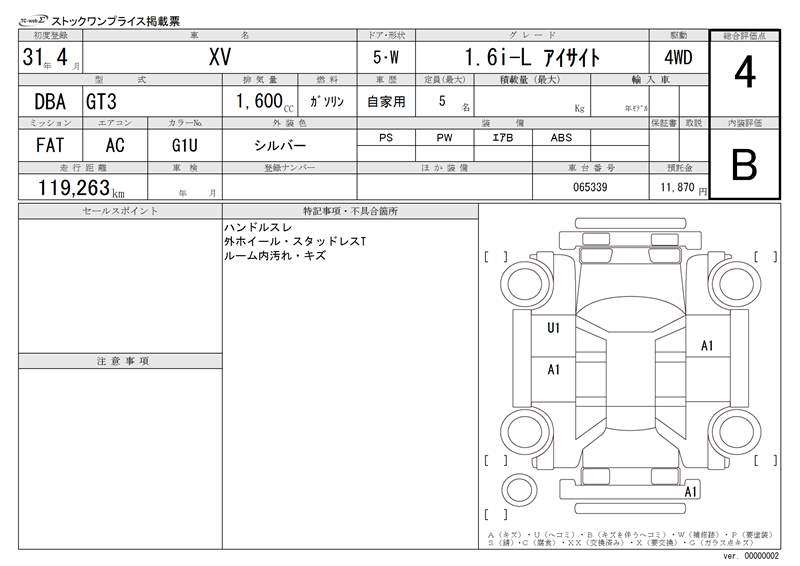 SUBARU SUBARU XV - лот 21718