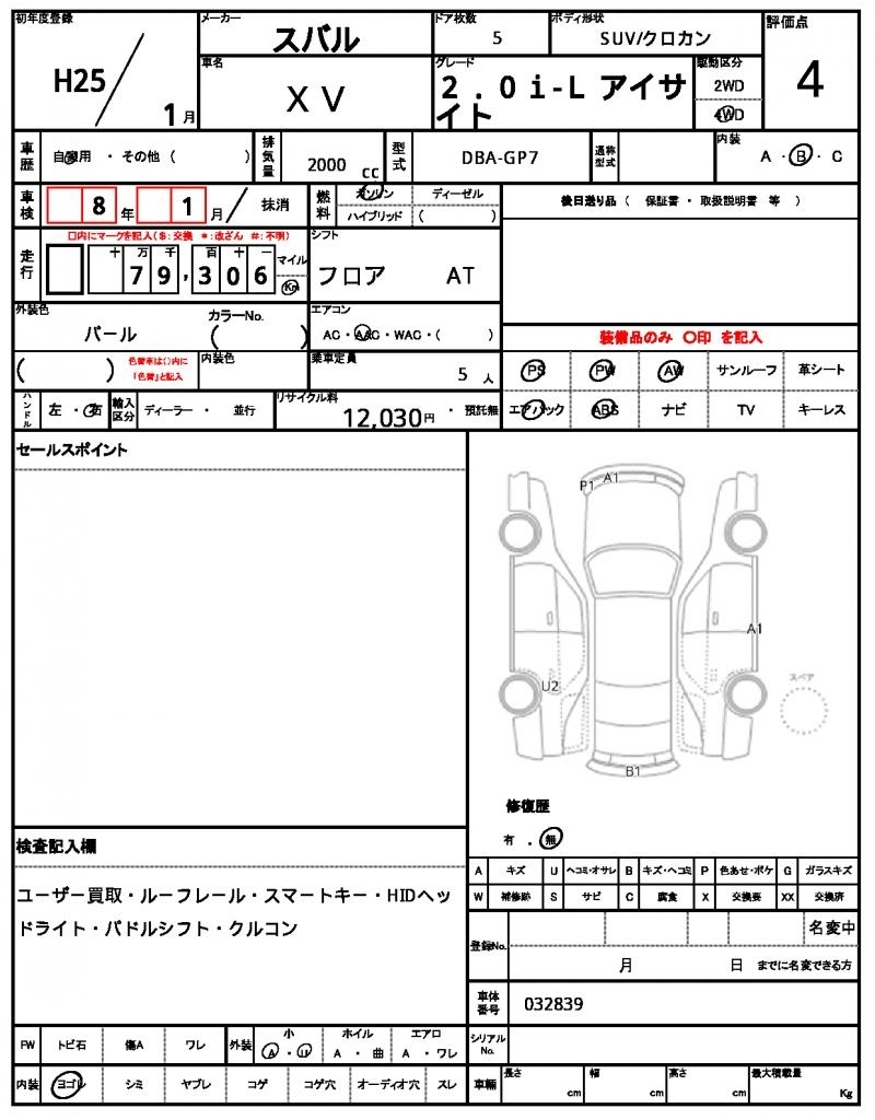 SUBARU SUBARU XV - лот 58879