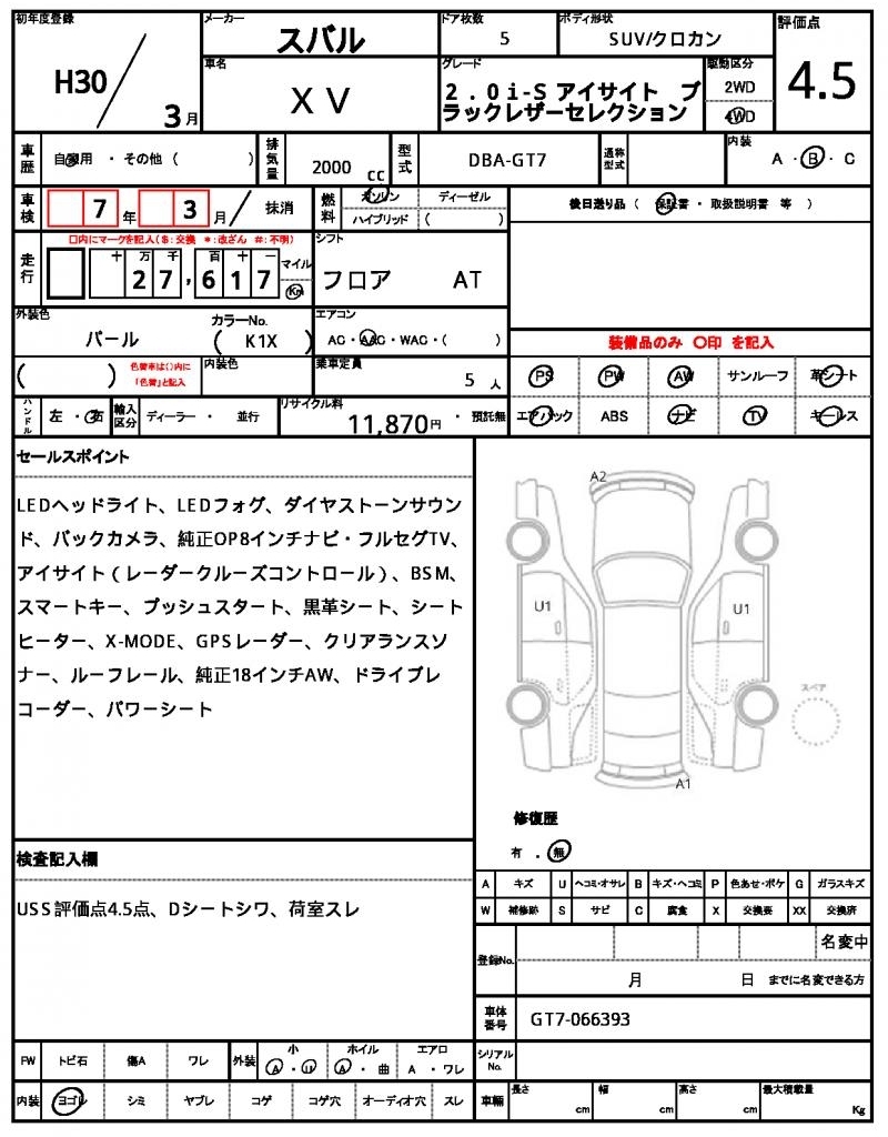 SUBARU SUBARU XV - лот 59174
