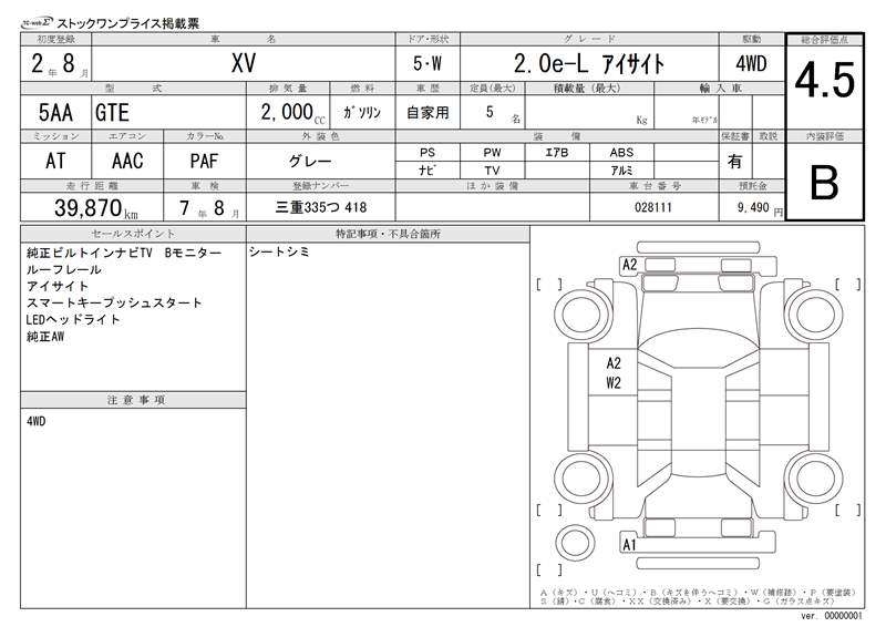SUBARU SUBARU XV - лот 14691