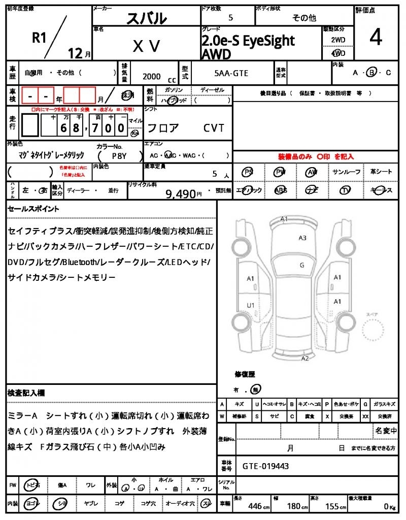 SUBARU SUBARU XV - лот 59397