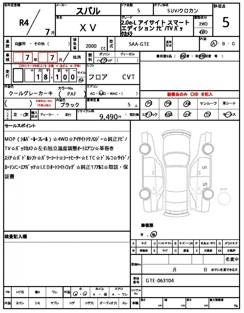 SUBARU SUBARU XV - лот 11023