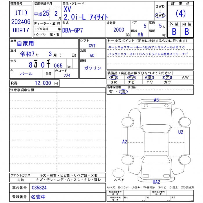 SUBARU SUBARU XV - лот 29217