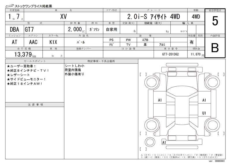 SUBARU SUBARU XV - лот 18301