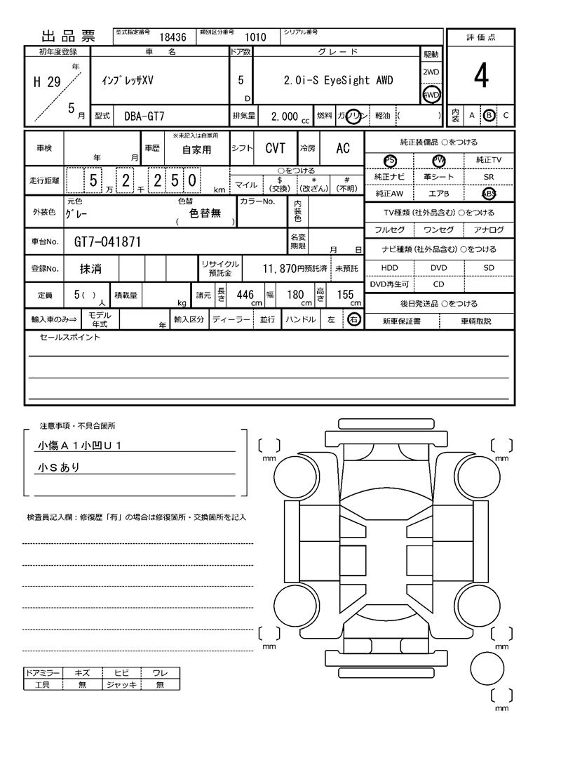 SUBARU SUBARU XV - лот 64951