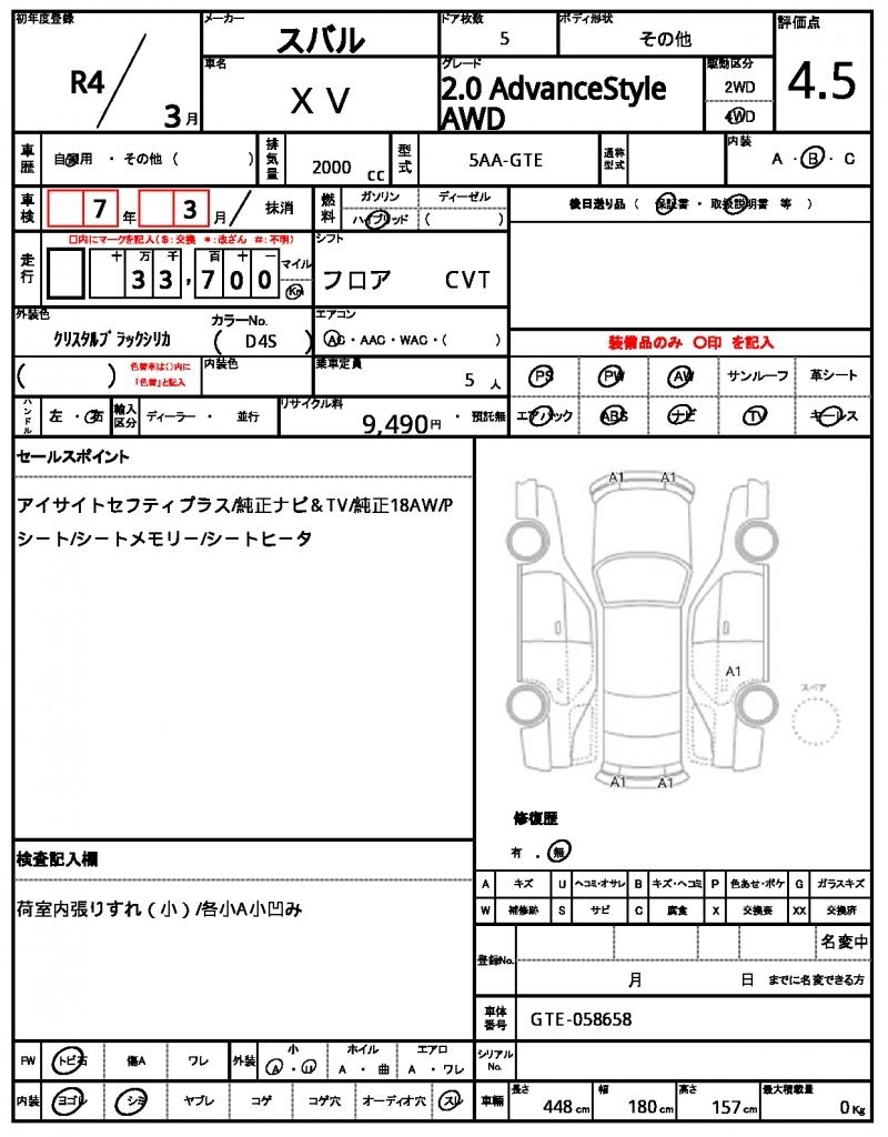 SUBARU SUBARU XV - лот 41647