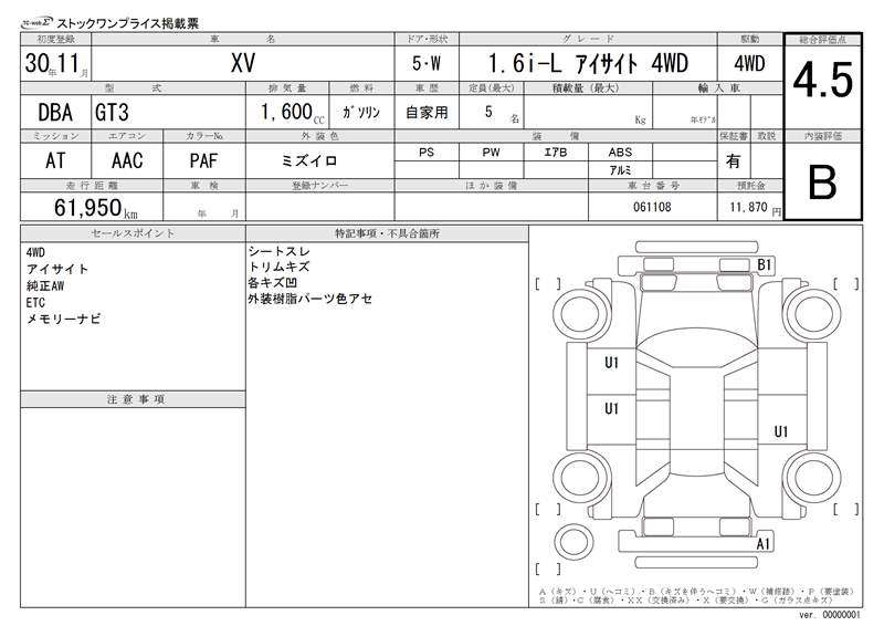 SUBARU SUBARU XV - лот 14273