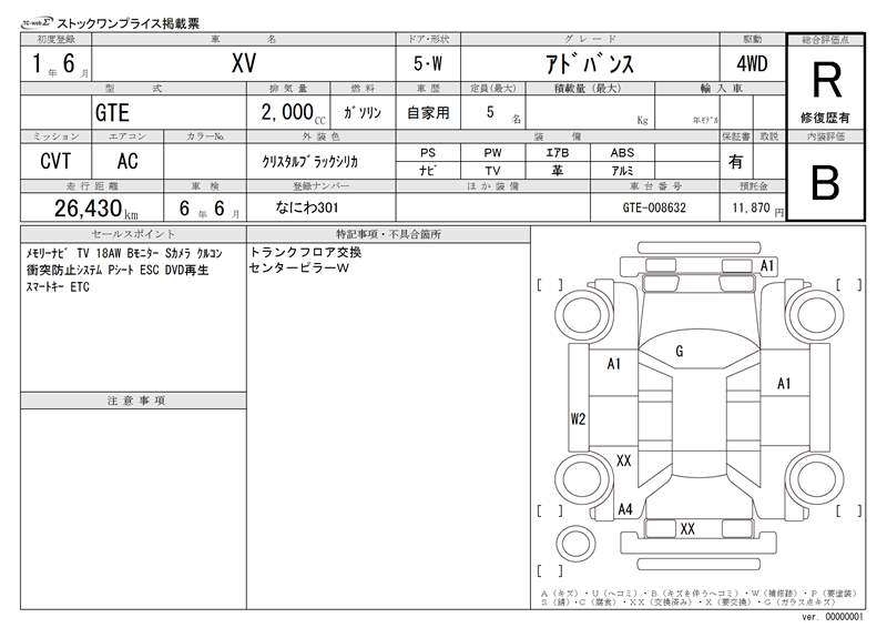 SUBARU SUBARU XV - лот 12978