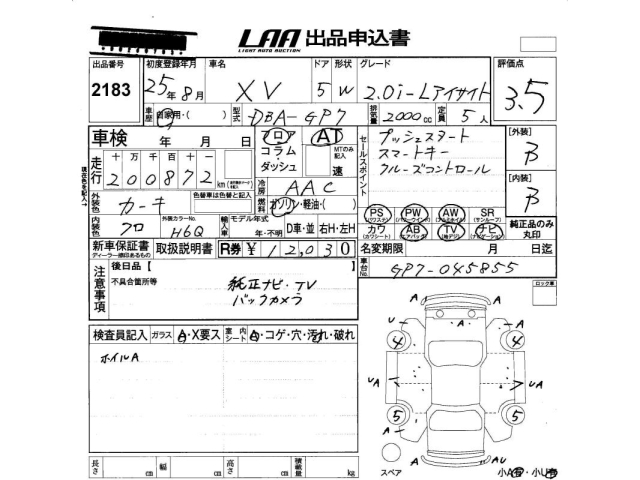 SUBARU SUBARU XV - лот 2183