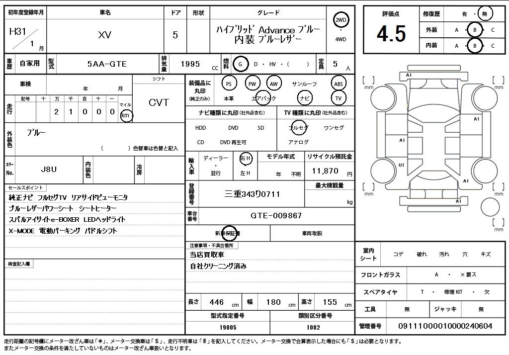 SUBARU SUBARU XV, 2021