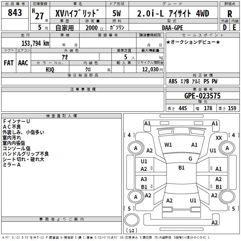 SUBARU SUBARU XV - лот 843