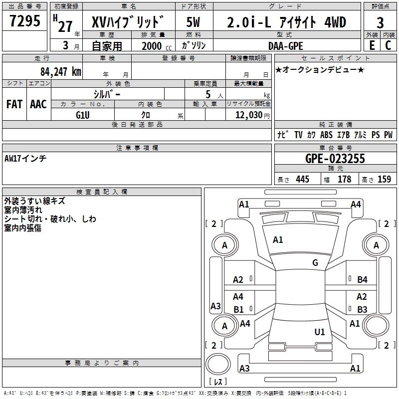 SUBARU SUBARU XV - лот 7295