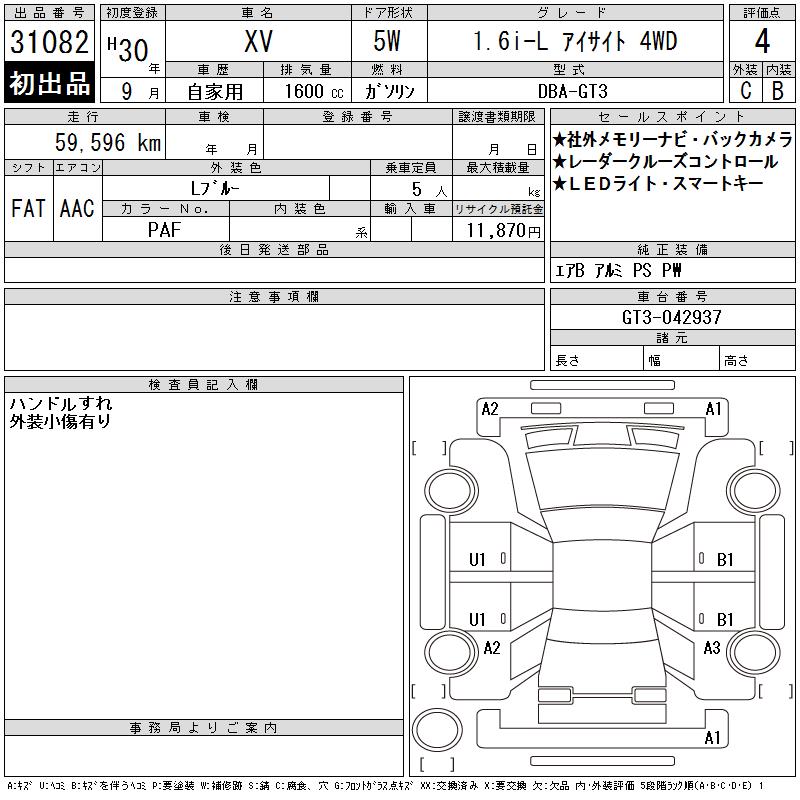 SUBARU SUBARU XV - лот 31082