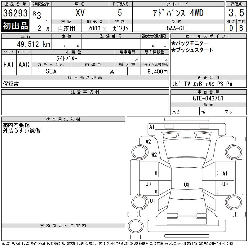 SUBARU SUBARU XV - лот 36293
