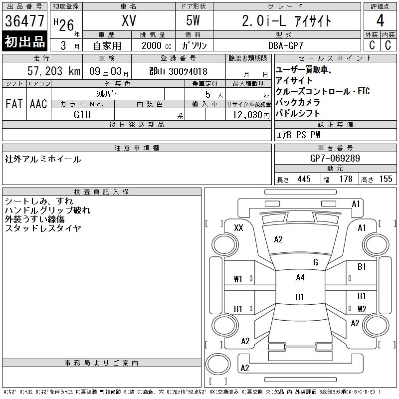 SUBARU SUBARU XV - лот 36477