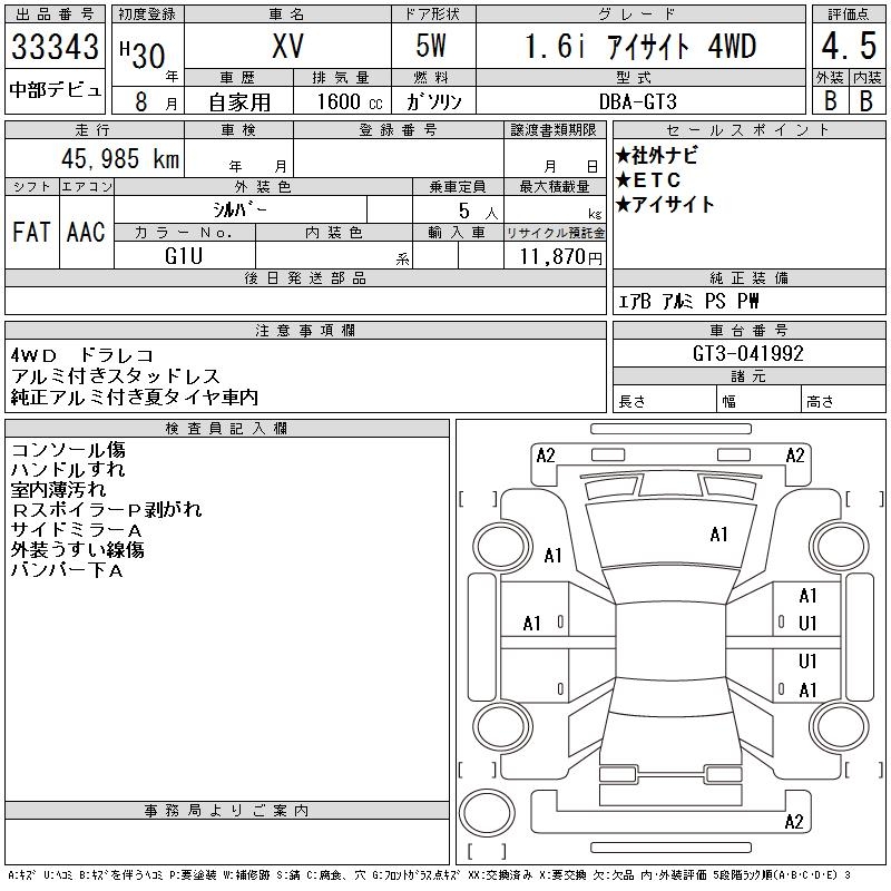 SUBARU SUBARU XV - лот 33343