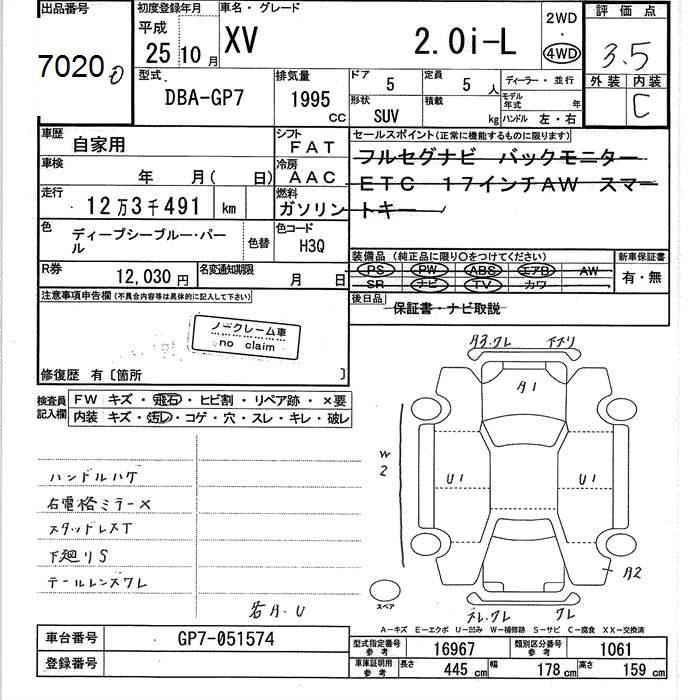 SUBARU SUBARU XV - лот 7020