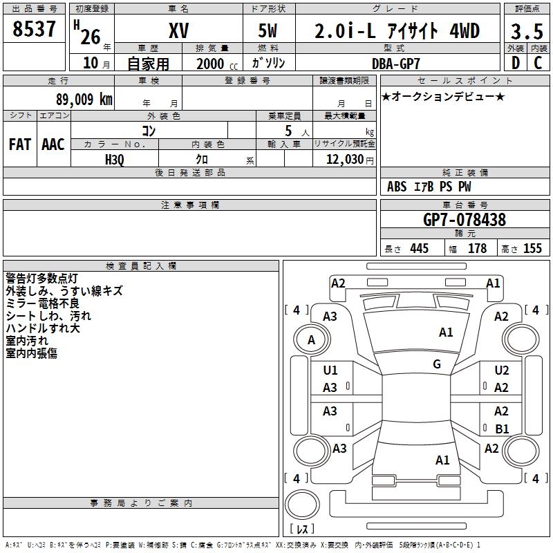 SUBARU SUBARU XV - лот 8537