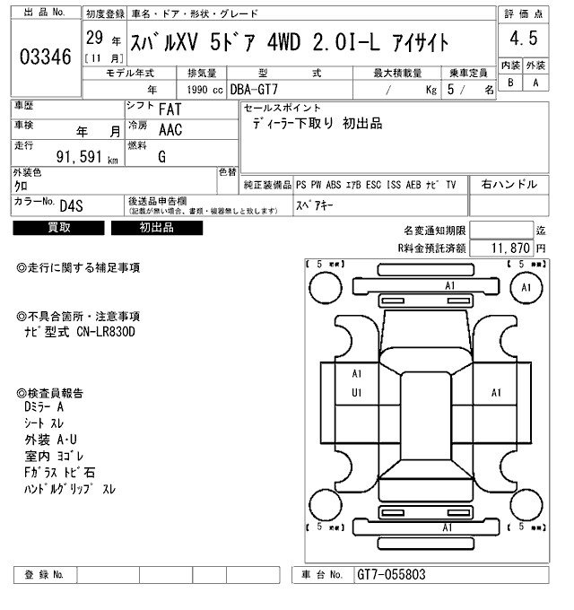 SUBARU SUBARU XV - лот 3346