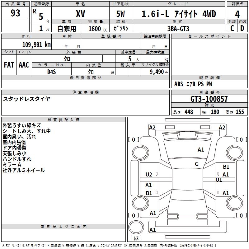 SUBARU SUBARU XV - лот 93