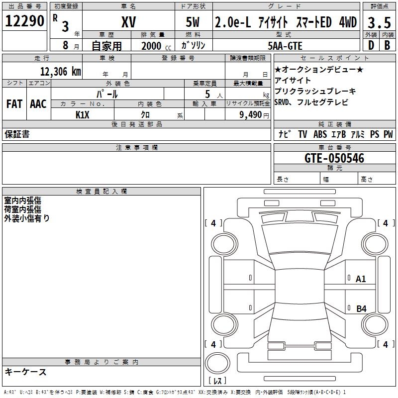 SUBARU SUBARU XV - лот 12290