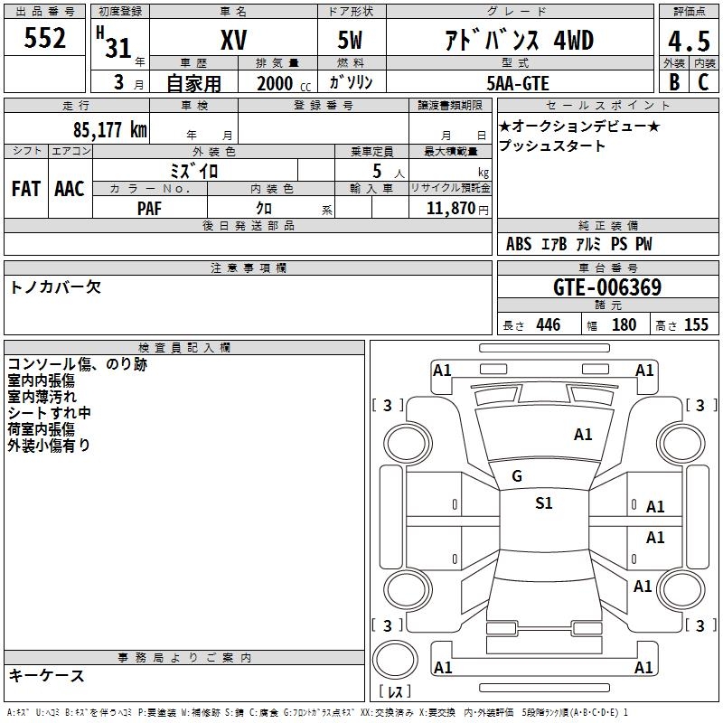SUBARU SUBARU XV - лот 552