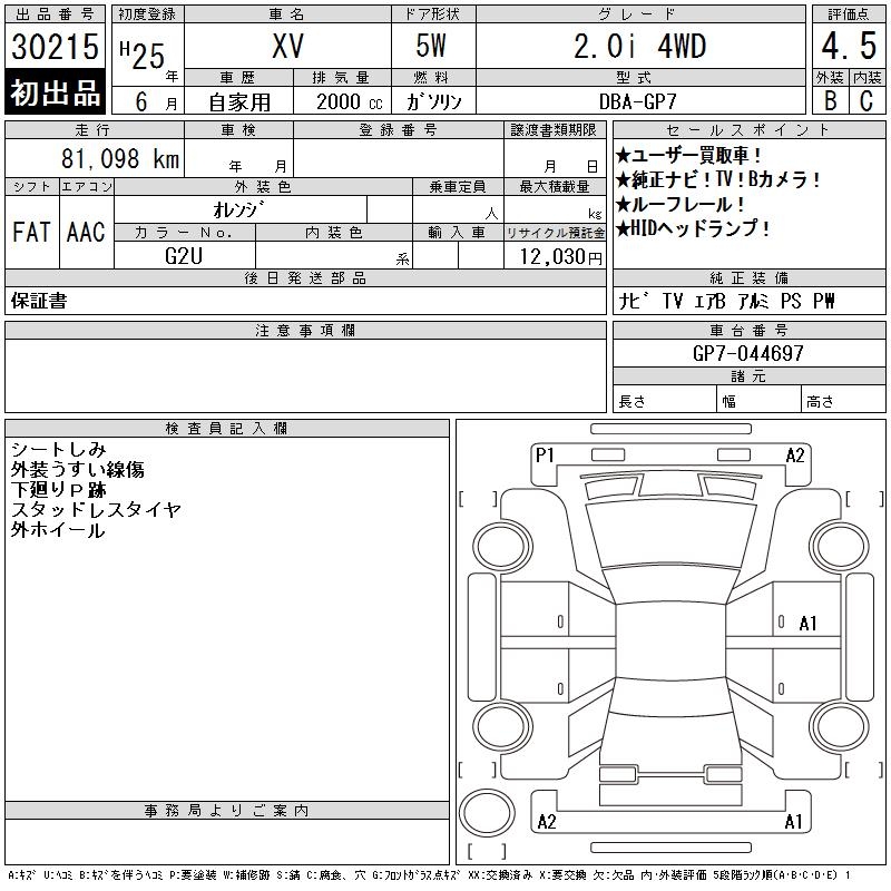 SUBARU SUBARU XV - лот 30215