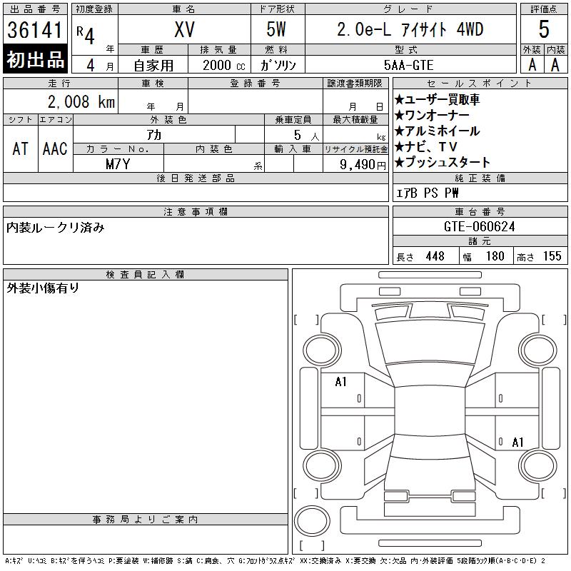 SUBARU SUBARU XV - лот 36141