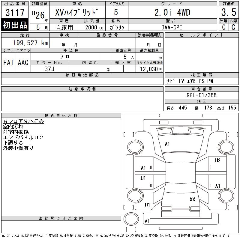 SUBARU SUBARU XV - лот 3117