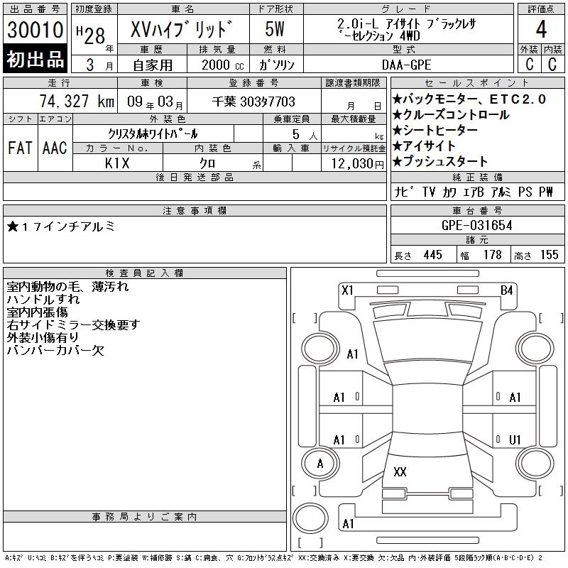 SUBARU SUBARU XV - лот 30010