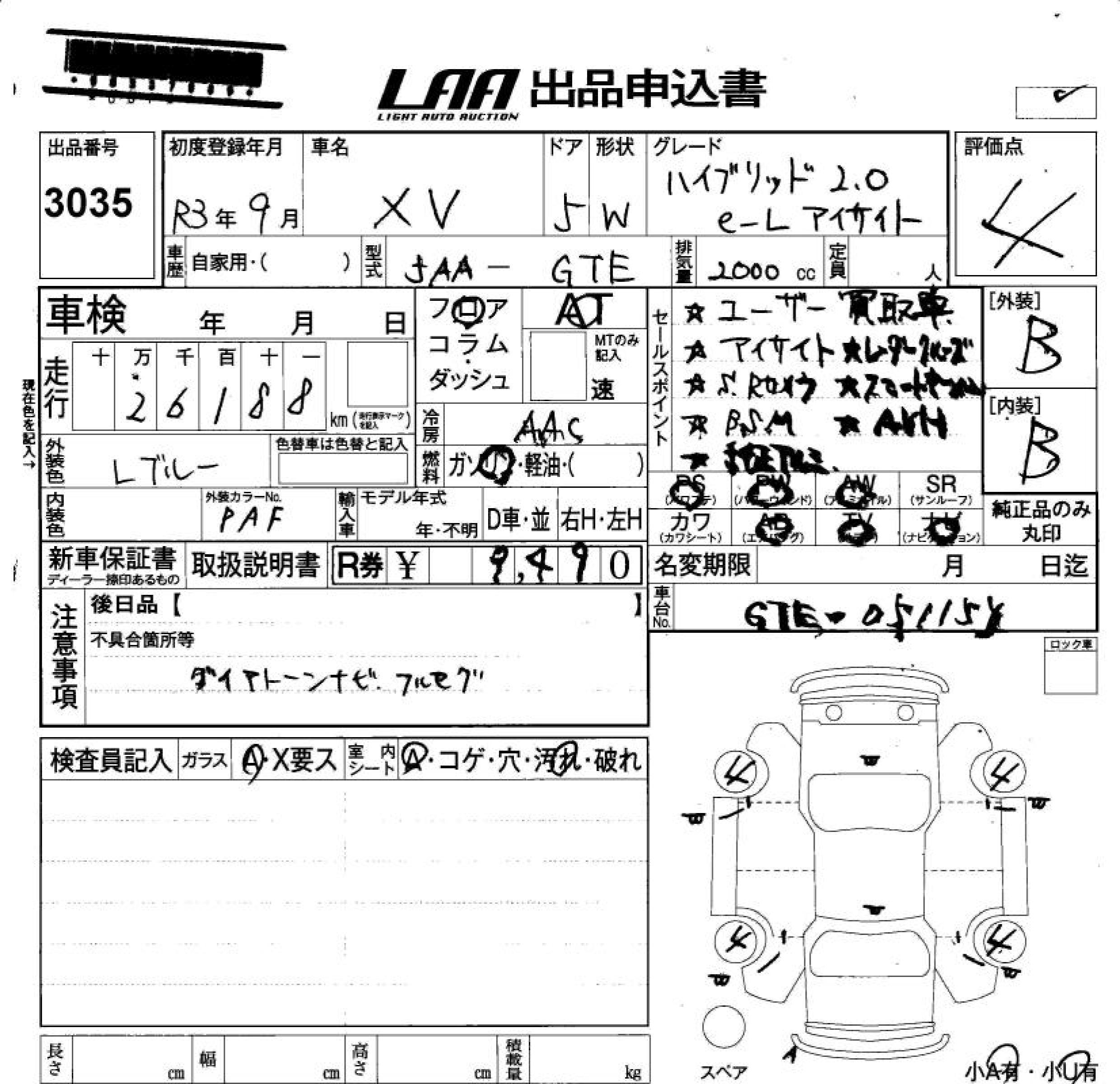 SUBARU SUBARU XV - лот 3035