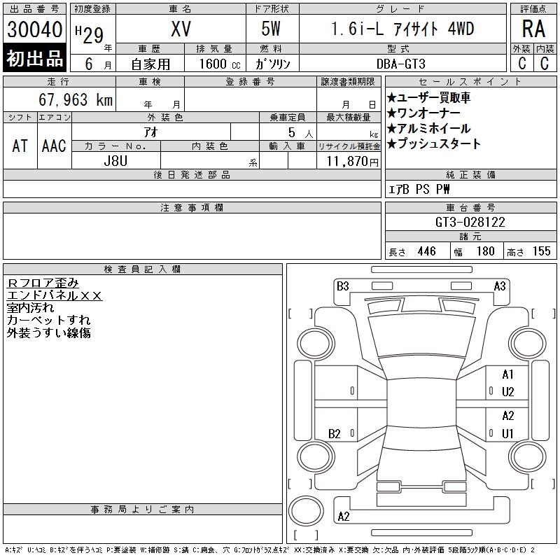 SUBARU SUBARU XV - лот 30040