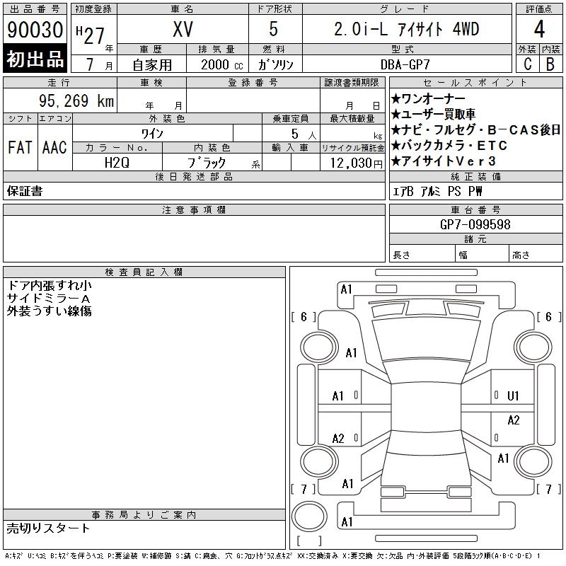 SUBARU SUBARU XV - лот 90030