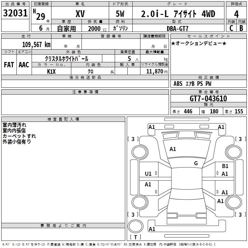 SUBARU SUBARU XV - лот 32031