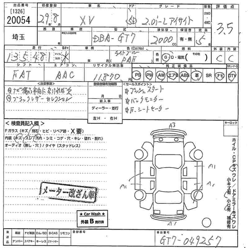 SUBARU SUBARU XV - лот 20054