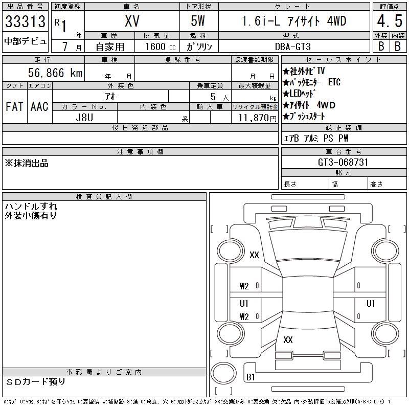 SUBARU SUBARU XV - лот 33313