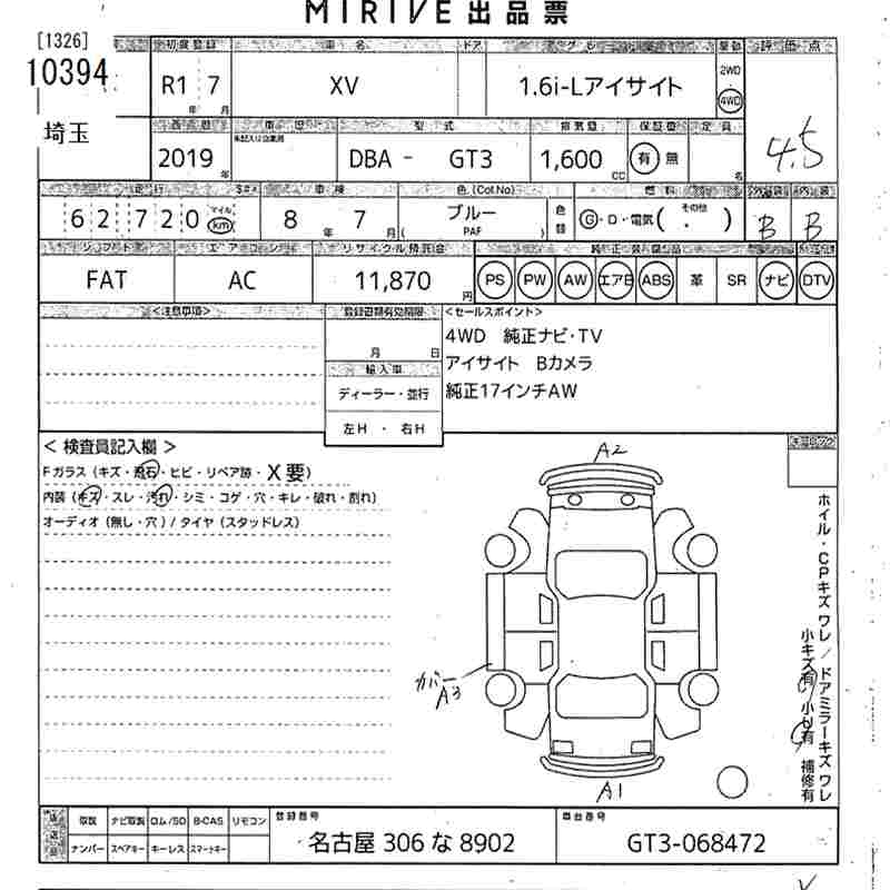 SUBARU SUBARU XV - лот 10394