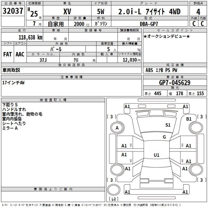 SUBARU SUBARU XV - лот 32037