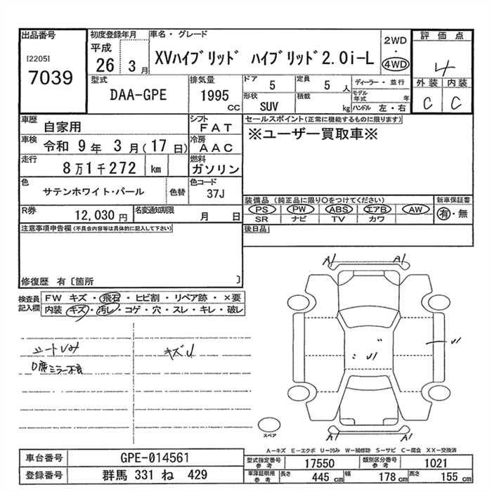 SUBARU SUBARU XV - лот 7039