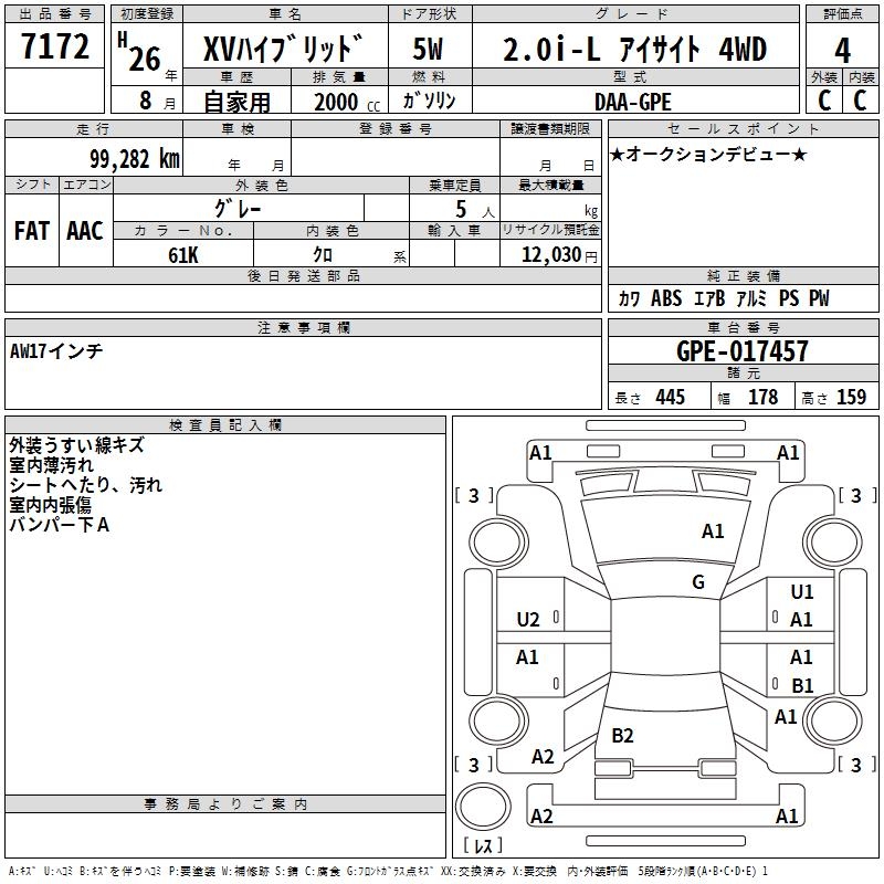 SUBARU SUBARU XV - лот 7172