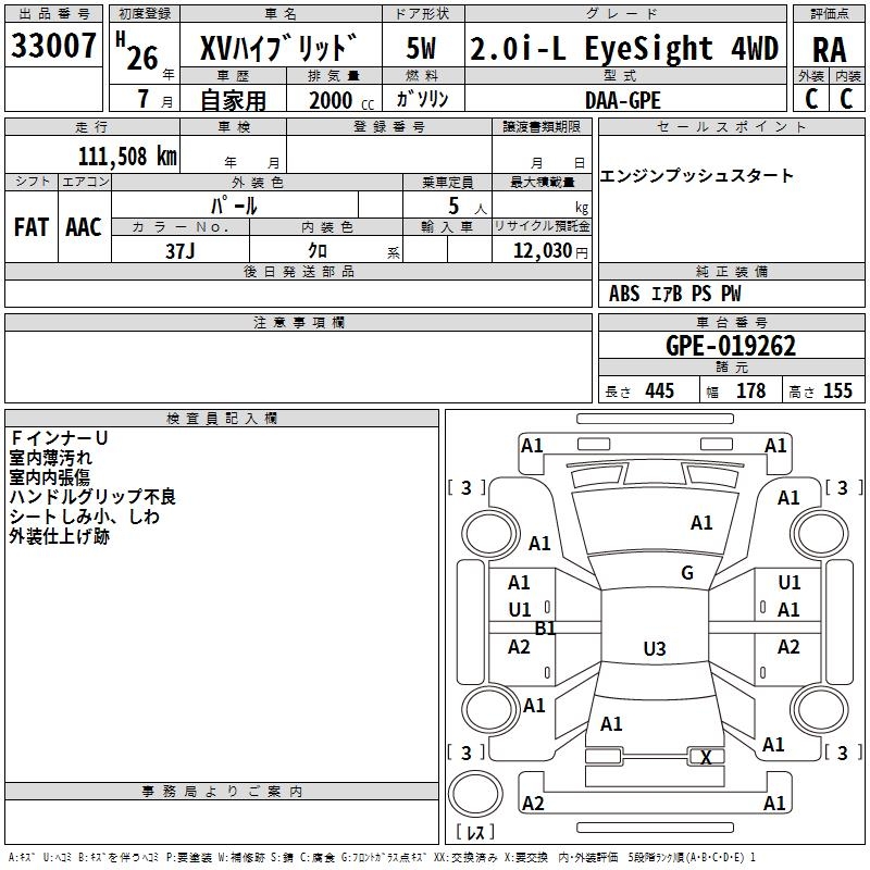 SUBARU SUBARU XV - лот 33007